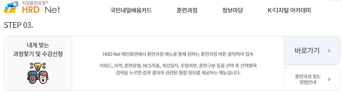 4. STEP 03. 내게 맞는 과정 찾기 및 수강신청-바로가기 클릭