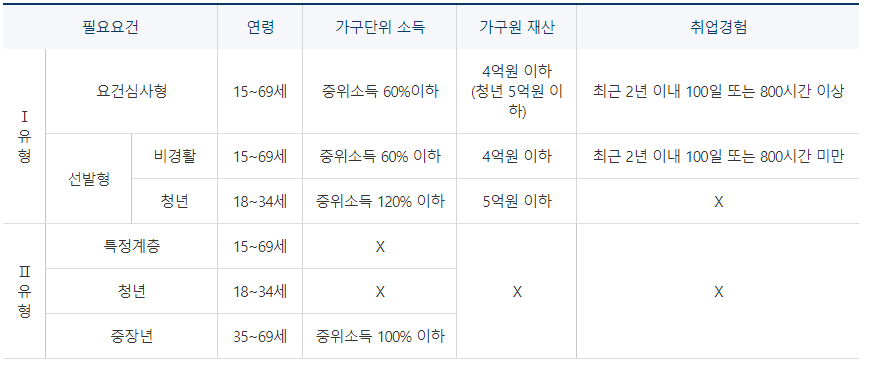 | 국민취업지원제도 1형 국민취업지원제도 2형(특정계층) |